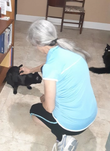 Other times, we meow when we’re not happy about something. Those meows sound different from our greetings and when we’re saying we want something. Like the other day, someone came over, and when he left, Mommy stood outside the door talking to him. I could hear her but couldn’t see her, and that had me upset. I started meowing really loud—long, sad cries. It worked! Mommy opened the door and picked me up.