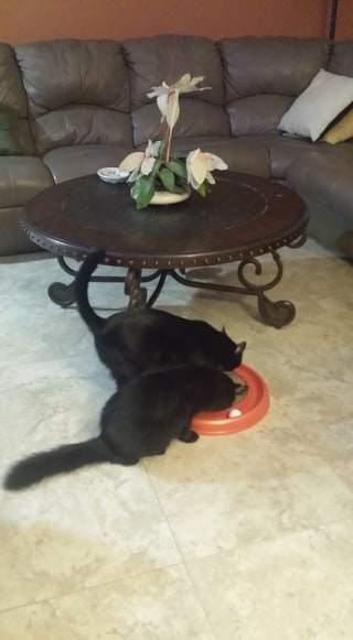 Ziggy here. Zorro and I love to play. He’s three and I’m four. According to the Purina Cat Chow chart, that’s 28 and 32 in people years. We’re still young enough to enjoy toys. A lot. And when the toys we have get pushed under the furniture and we can’t reach them anymore, we look for other things to play with.