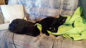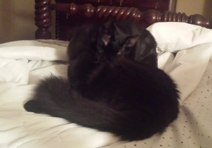 Eventually Zorro gets tired out and goes to bed. He likes to get under the covers and curl up against Mommy’s tummy. Then there’s nobody for me to play with. It’s really boring then. Everything’s dark and quiet, so I figure I might as well go curl up somewhere. But eventually everybody gets up and it’s fun again.