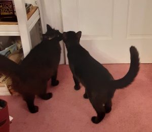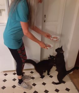 Grandma was worried about us eating raw meat, but Mommy said it’s healthy for cats, because that’s how we eat in the wild. When we catch mice, we don’t cook them before we eat them. Besides, before Mommy and Aunt Kim grind up the meat, they put it in boiling water for a couple of minutes to kill any bad stuff. They’re also going to get vitamins to put in our food, so that we’re getting everything we need.