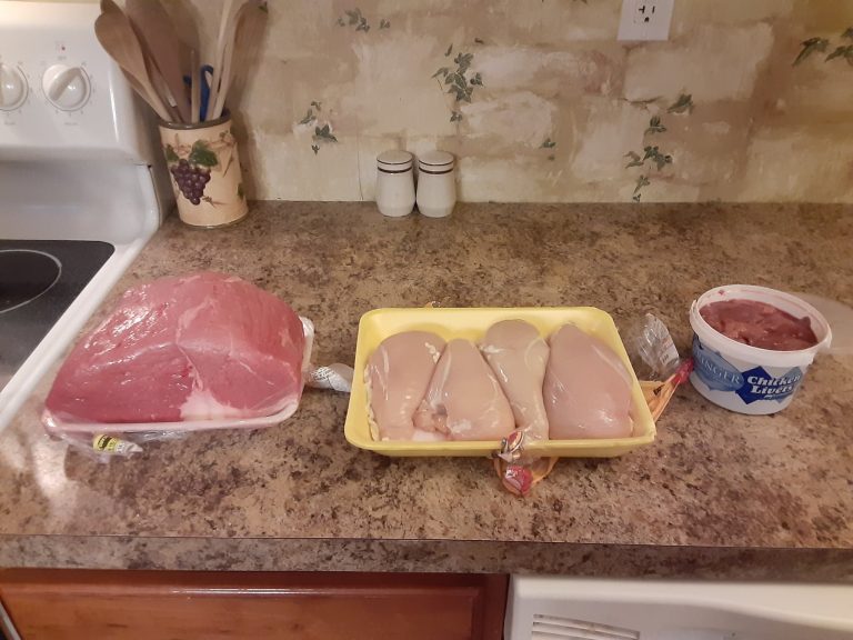 Finally, Mommy came over with a big bowl of fresh ground chicken with liver and a tiny bit of vegetables. Oh, man, it smelled so good. I couldn’t wait for her to put some in our dishes and put them down on the floor. I even stood up for it.